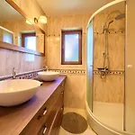 I rummen finns satellit-TV samt bekvämligheter som strykutrustning, strykjärn med strykbräda och luftkonditionering. Förutom soffa har inredningen sten eldstad och ljudisolerade fönster. I badrummet finns även en bidé, en separat toalett och en dusch. I badrummen finns också hårtorkar, badlakan och handdukar för extra komfort.